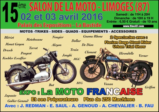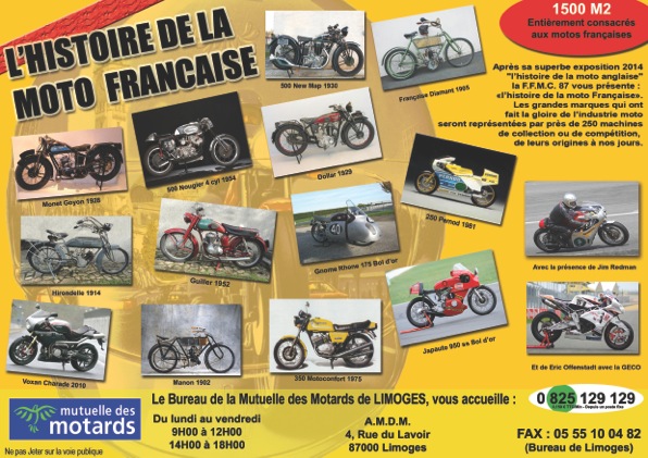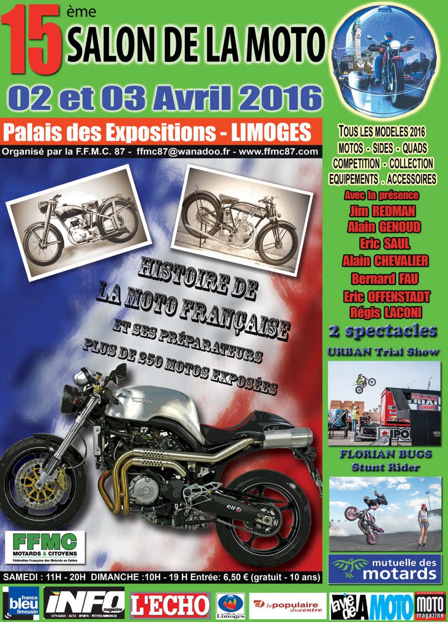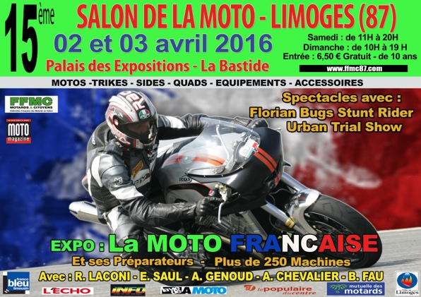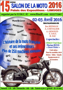 2 & 3 avril, la FFMC 87 organise le 15ème salon de la MOTO au Palais des Expositions à LIMOGES.