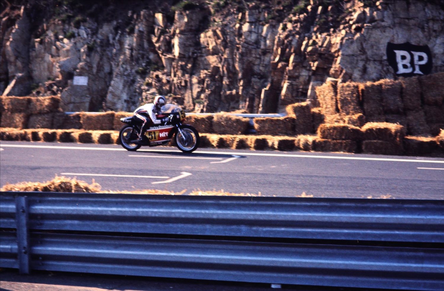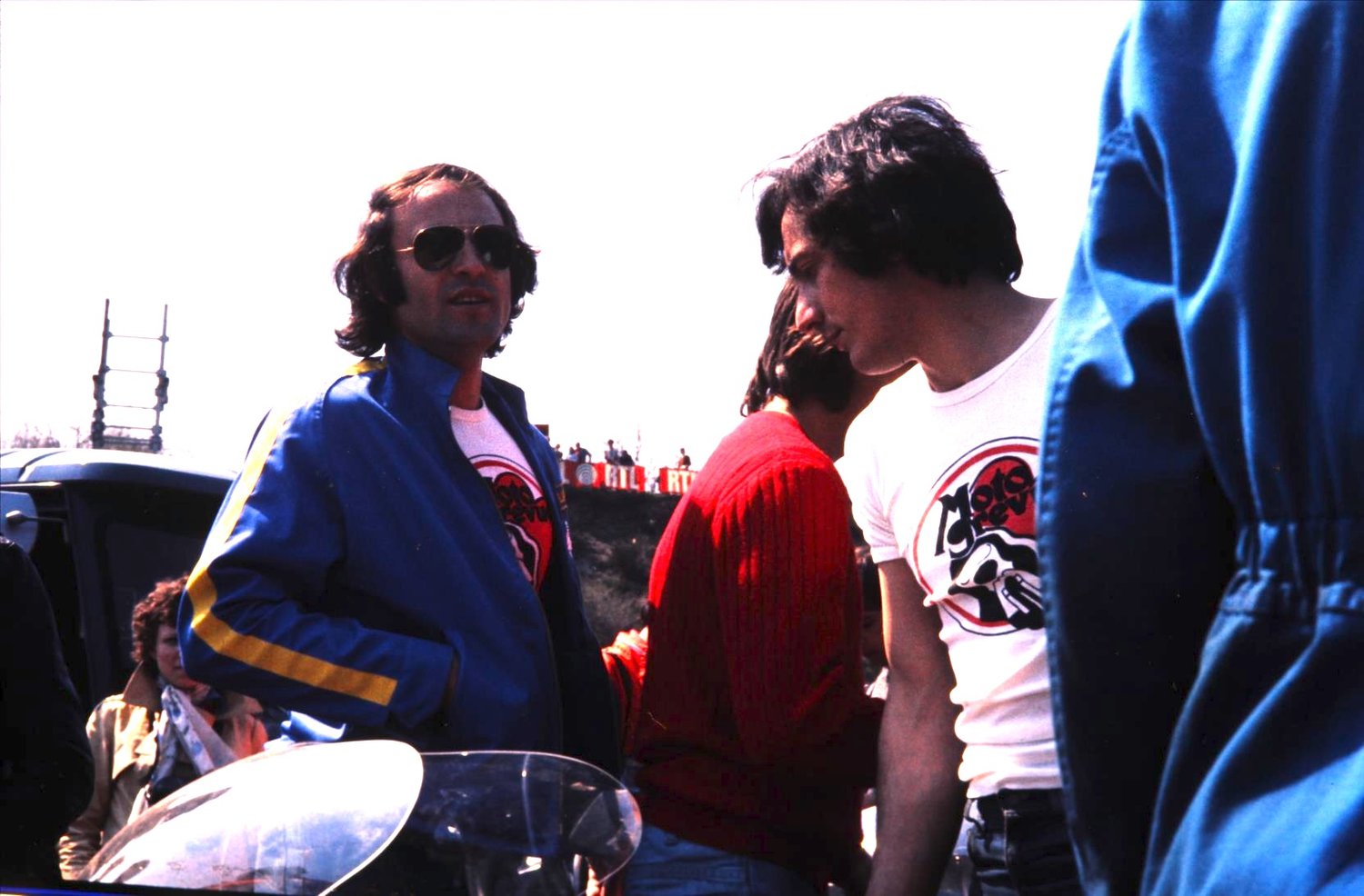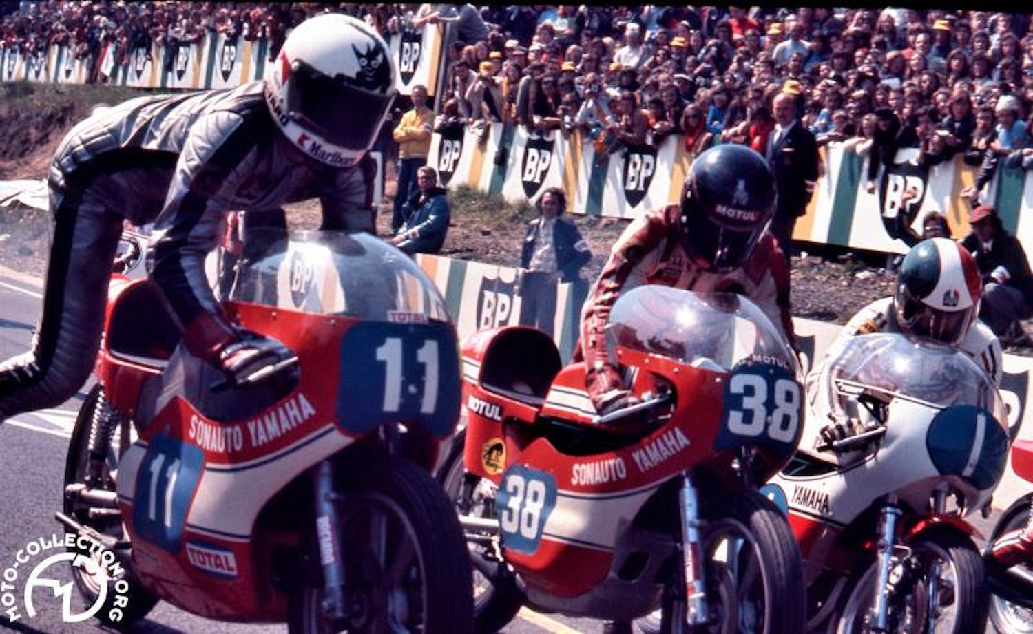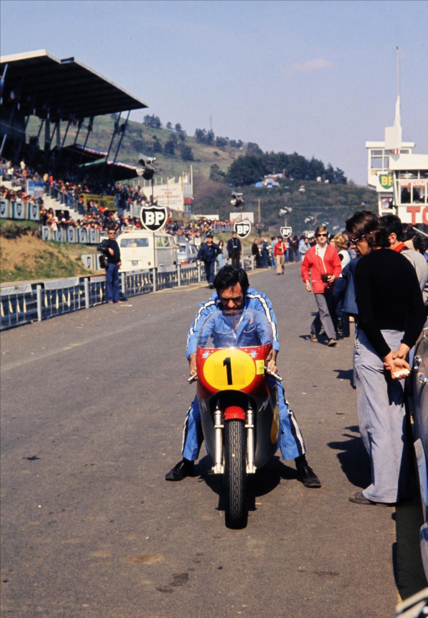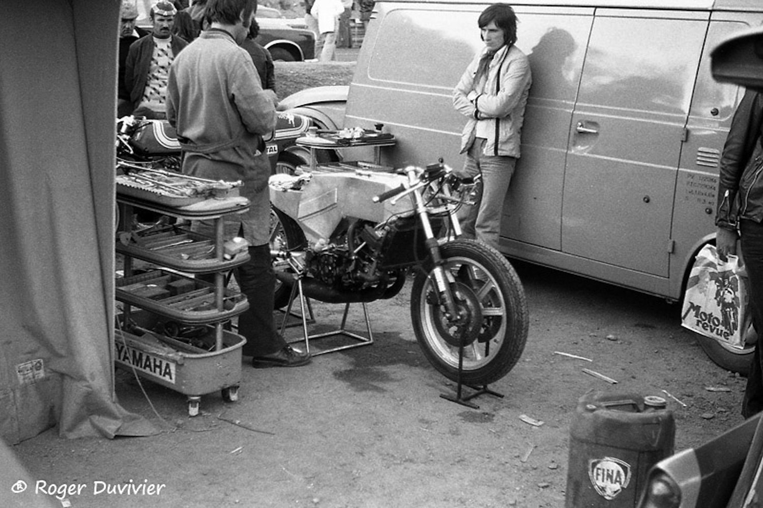Photos ambiance GP 74, (le public assis sur les rails!) AGO, PONS, BOURGEOIS et Poly coques DROUIHIOLE Bernard. Motos MORACO et SONAUTO.