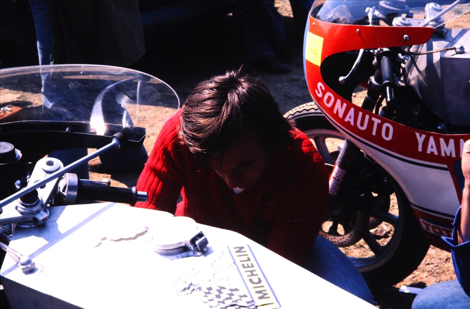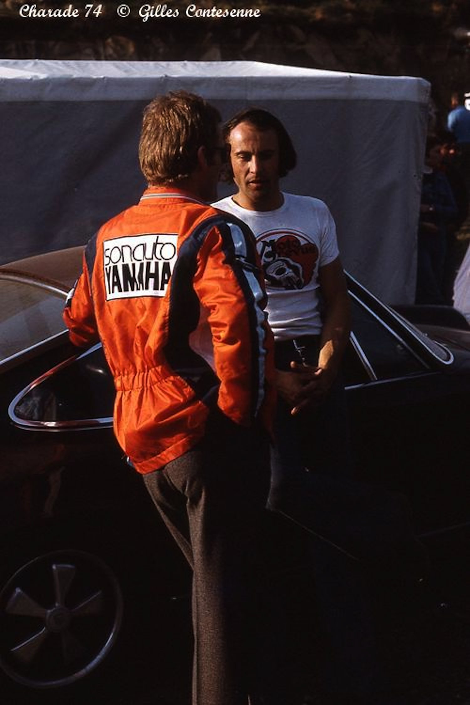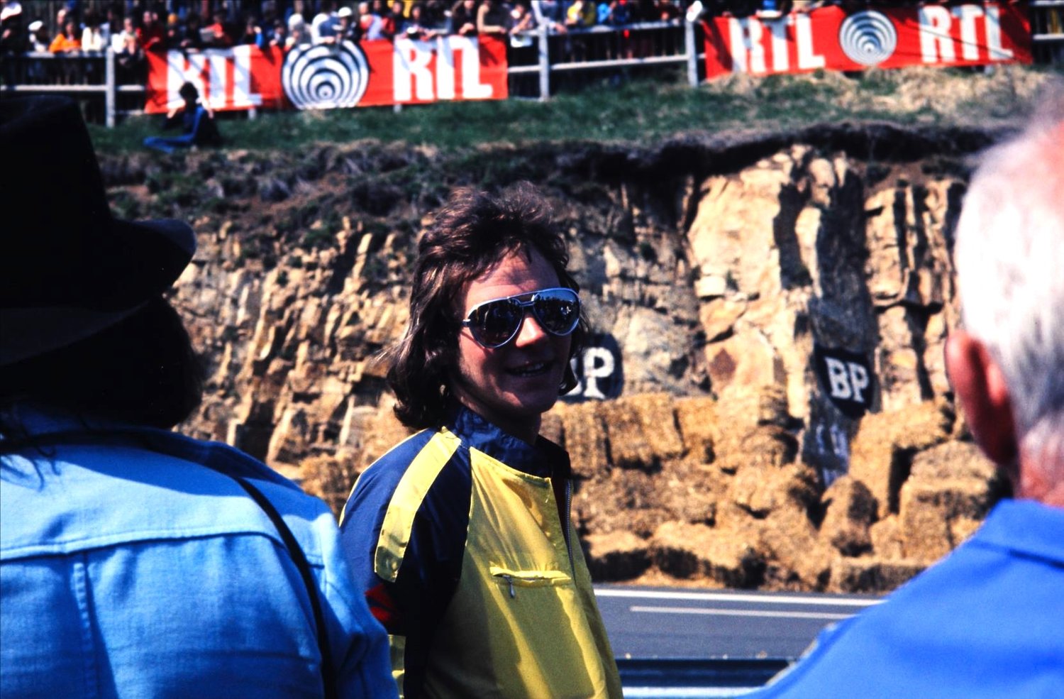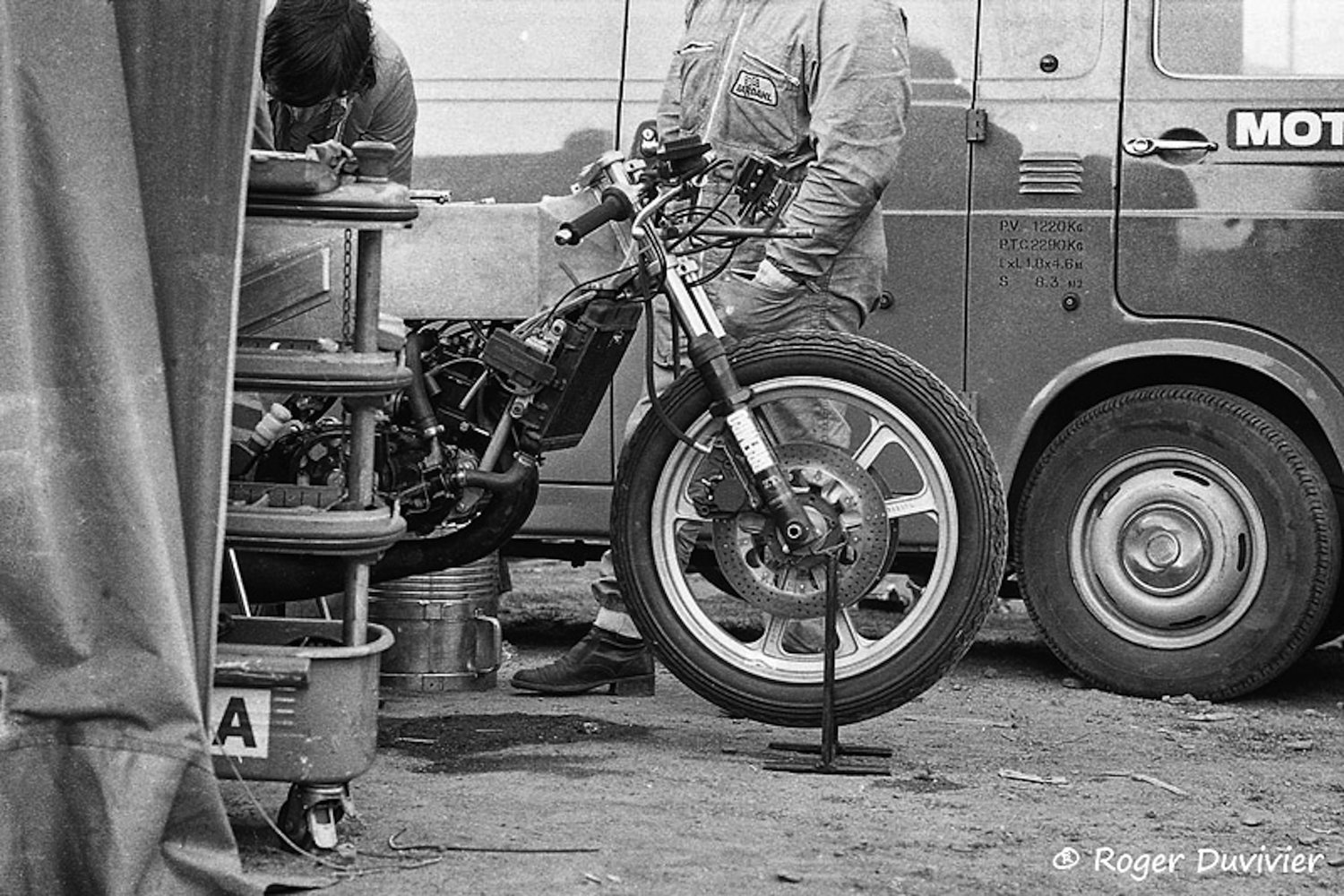 Photos ambiance GP 74, (le public assis sur les rails!) AGO, PONS, BOURGEOIS et Poly coques DROUIHIOLE Bernard. Motos MORACO et SONAUTO.