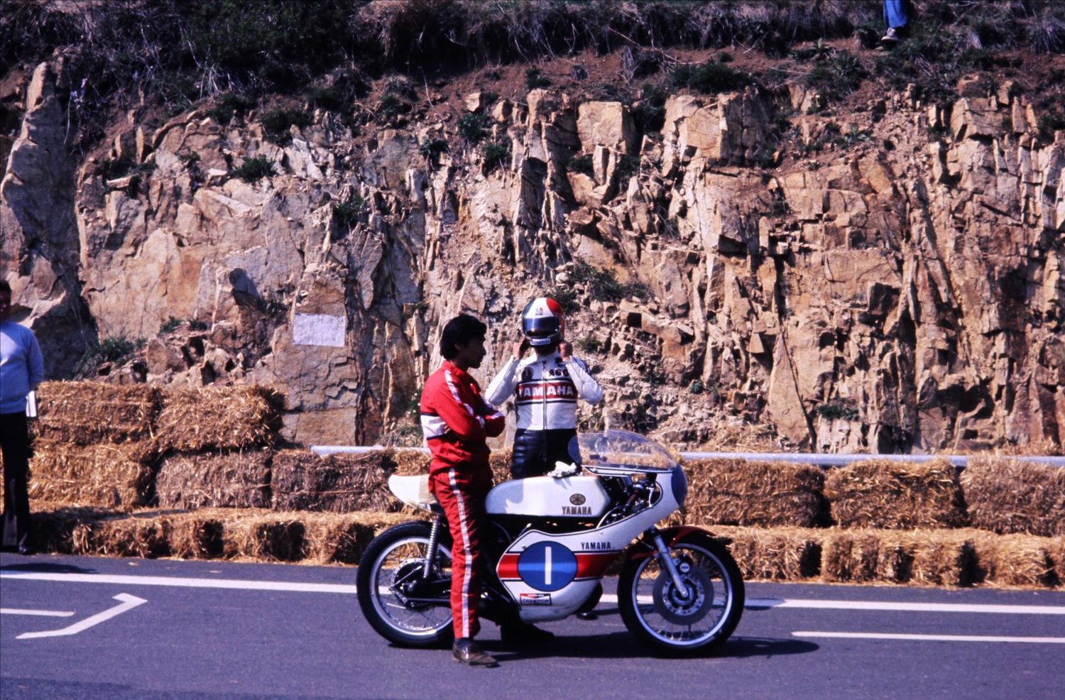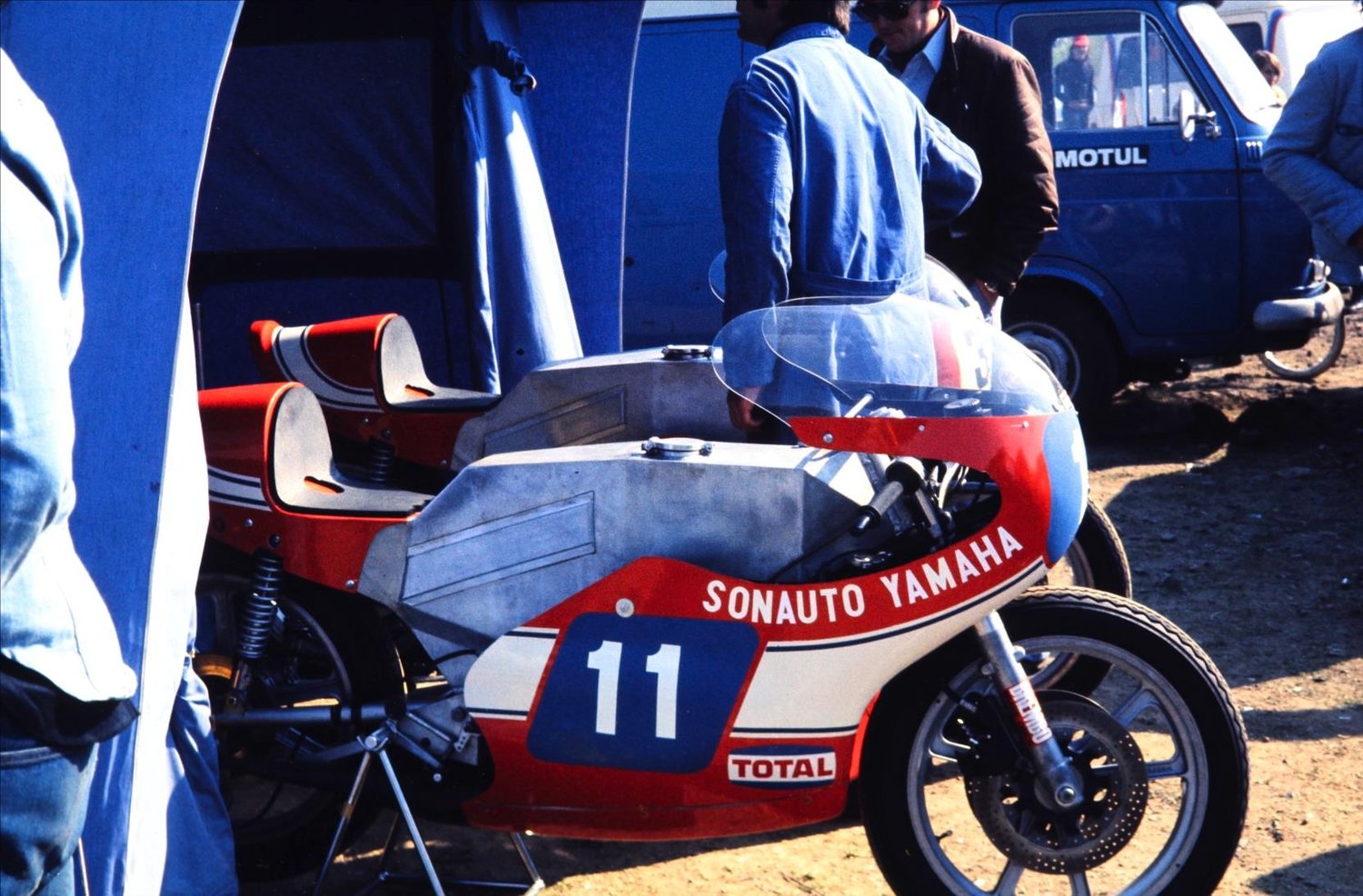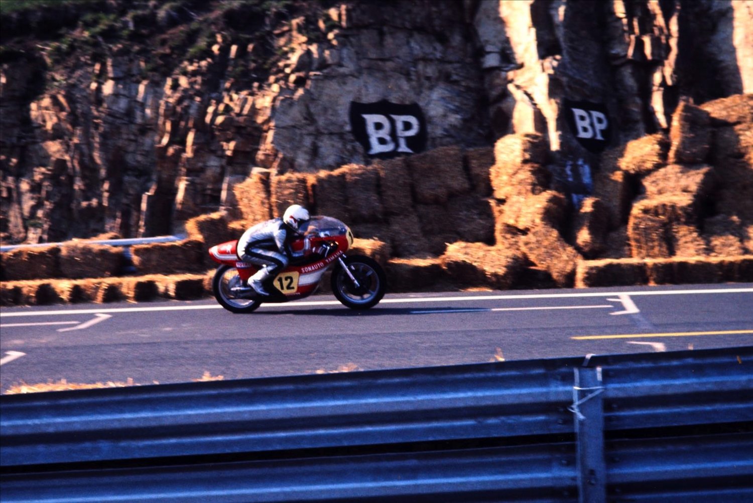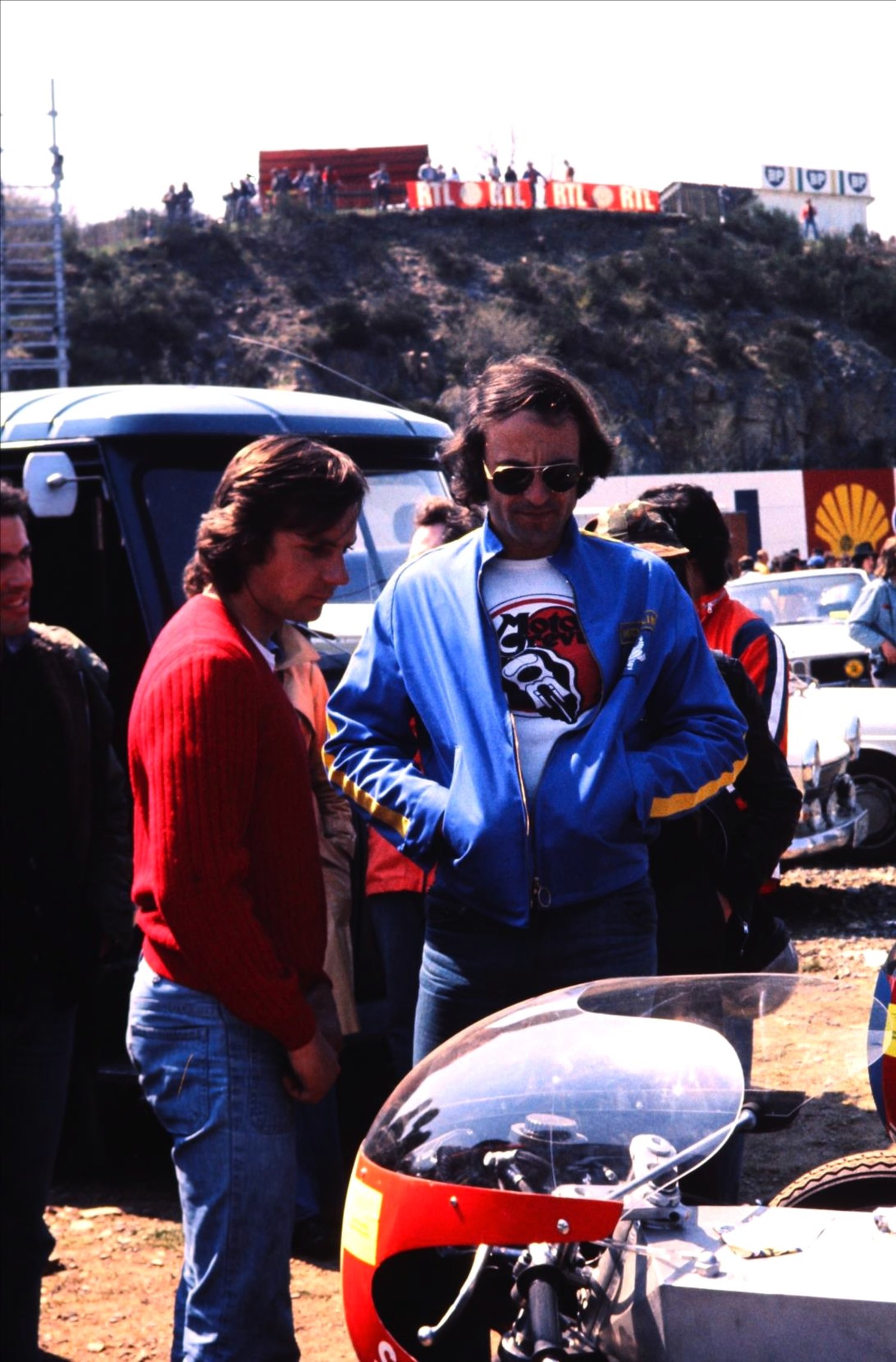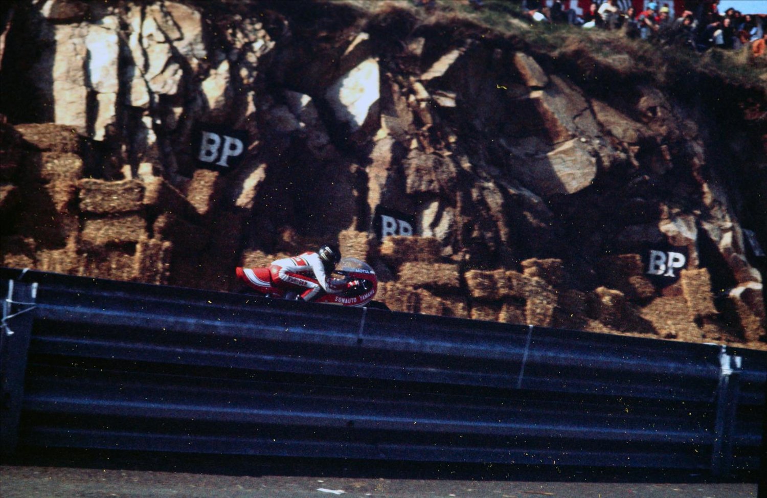 Photos ambiance GP 74, (le public assis sur les rails!) AGO, PONS, BOURGEOIS et Poly coques DROUIHIOLE Bernard. Motos MORACO et SONAUTO.