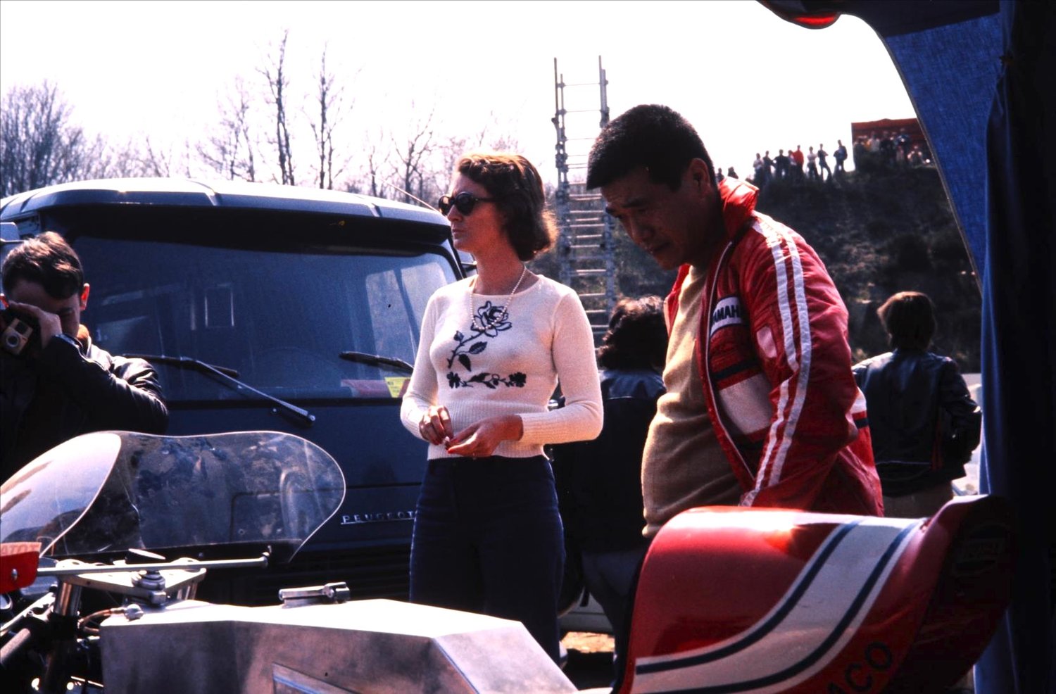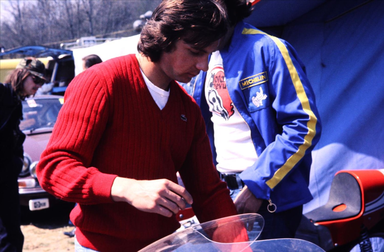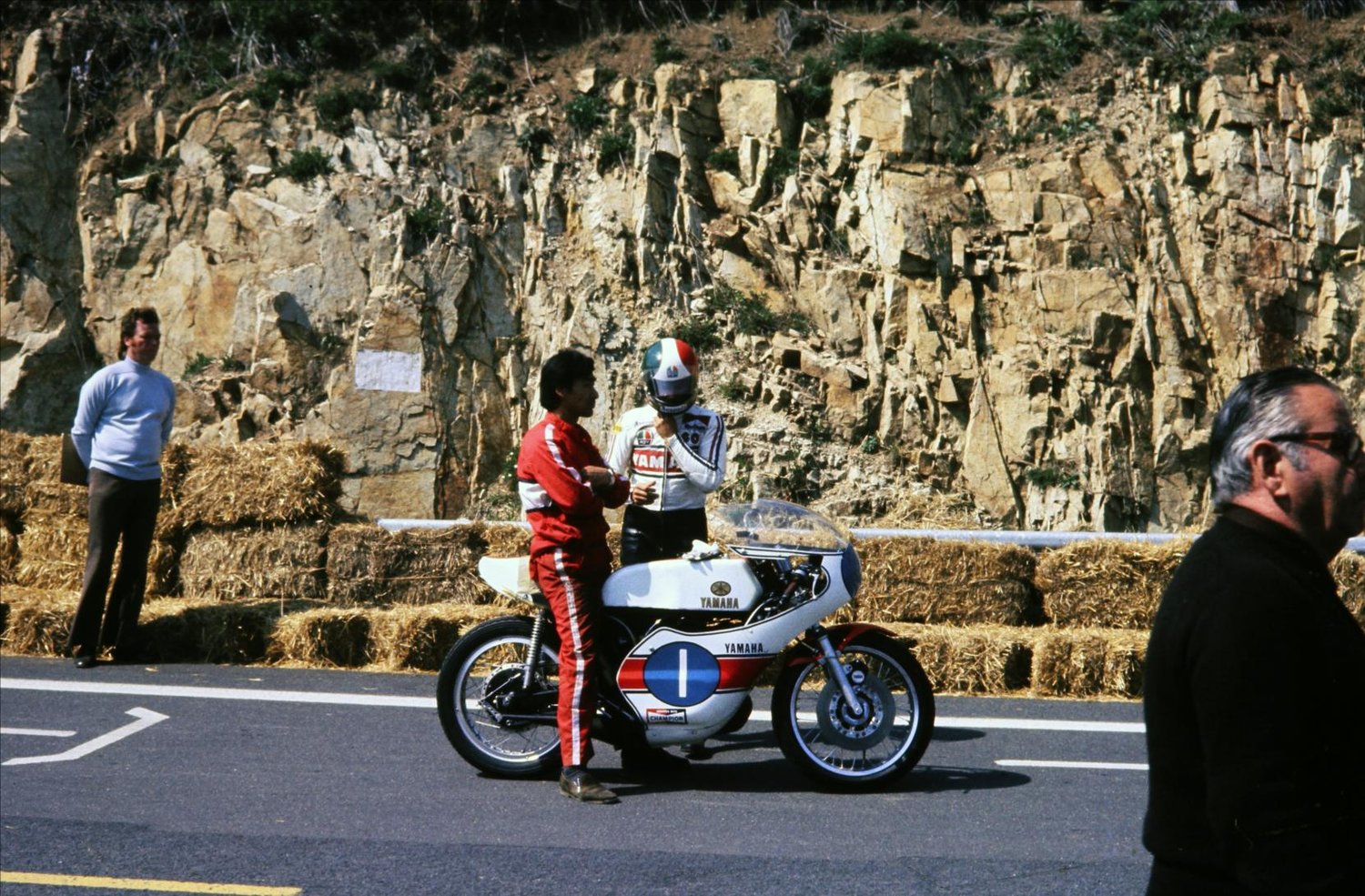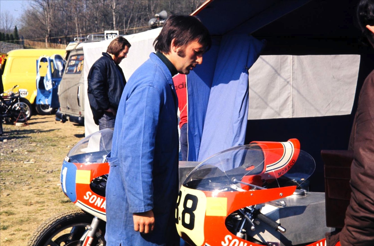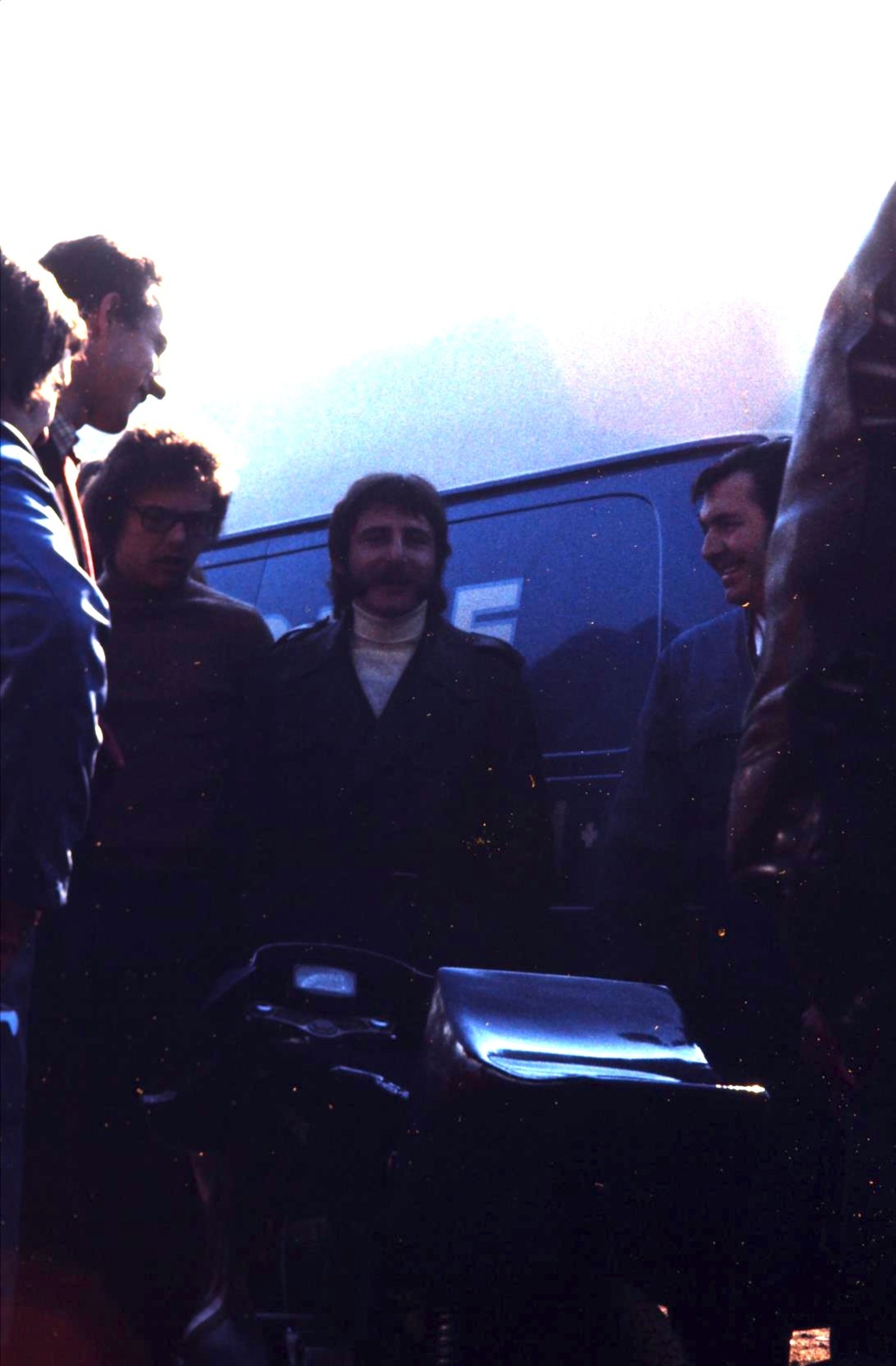 Photos ambiance GP 74, (le public assis sur les rails!) AGO, PONS, BOURGEOIS et Poly coques DROUIHIOLE Bernard. Motos MORACO et SONAUTO.